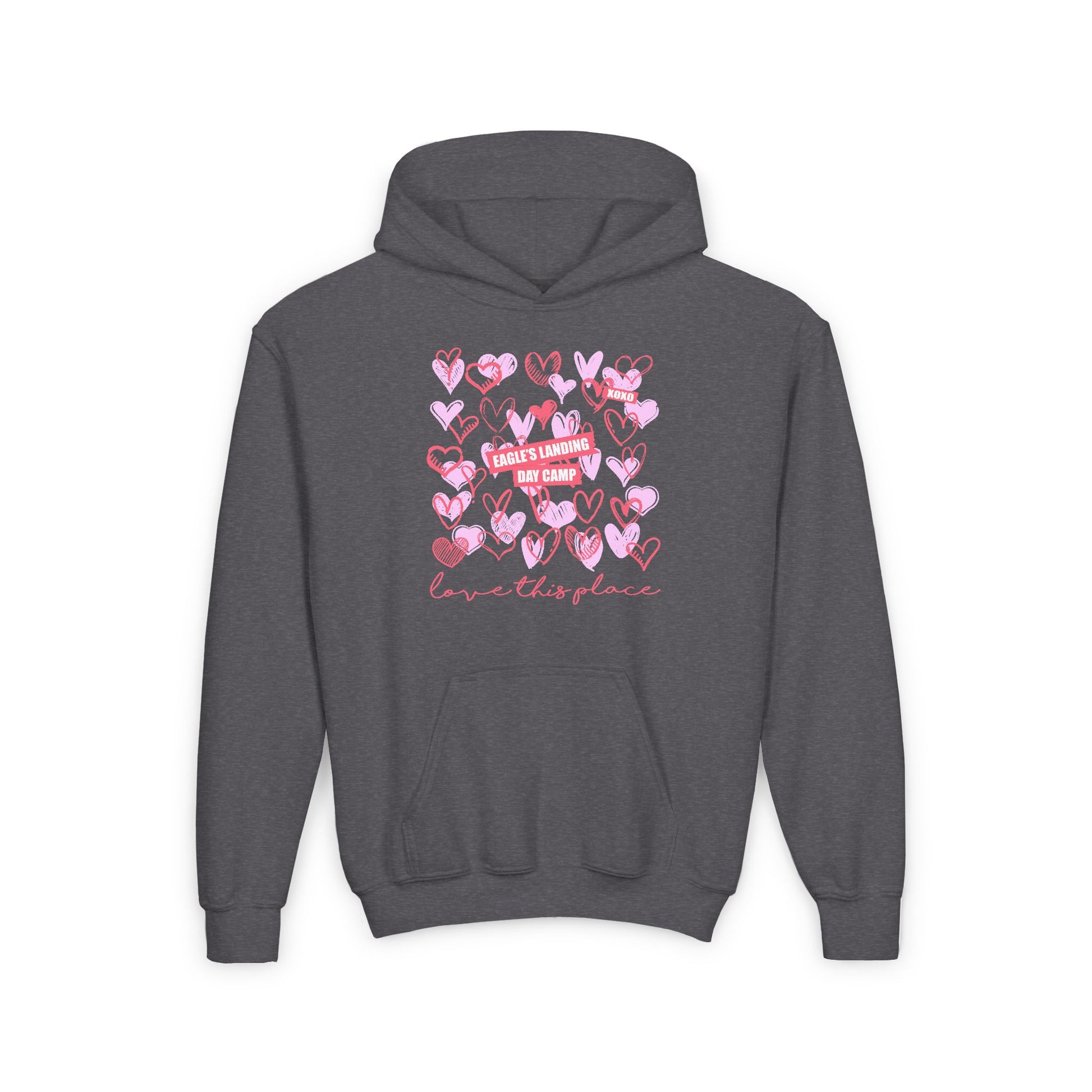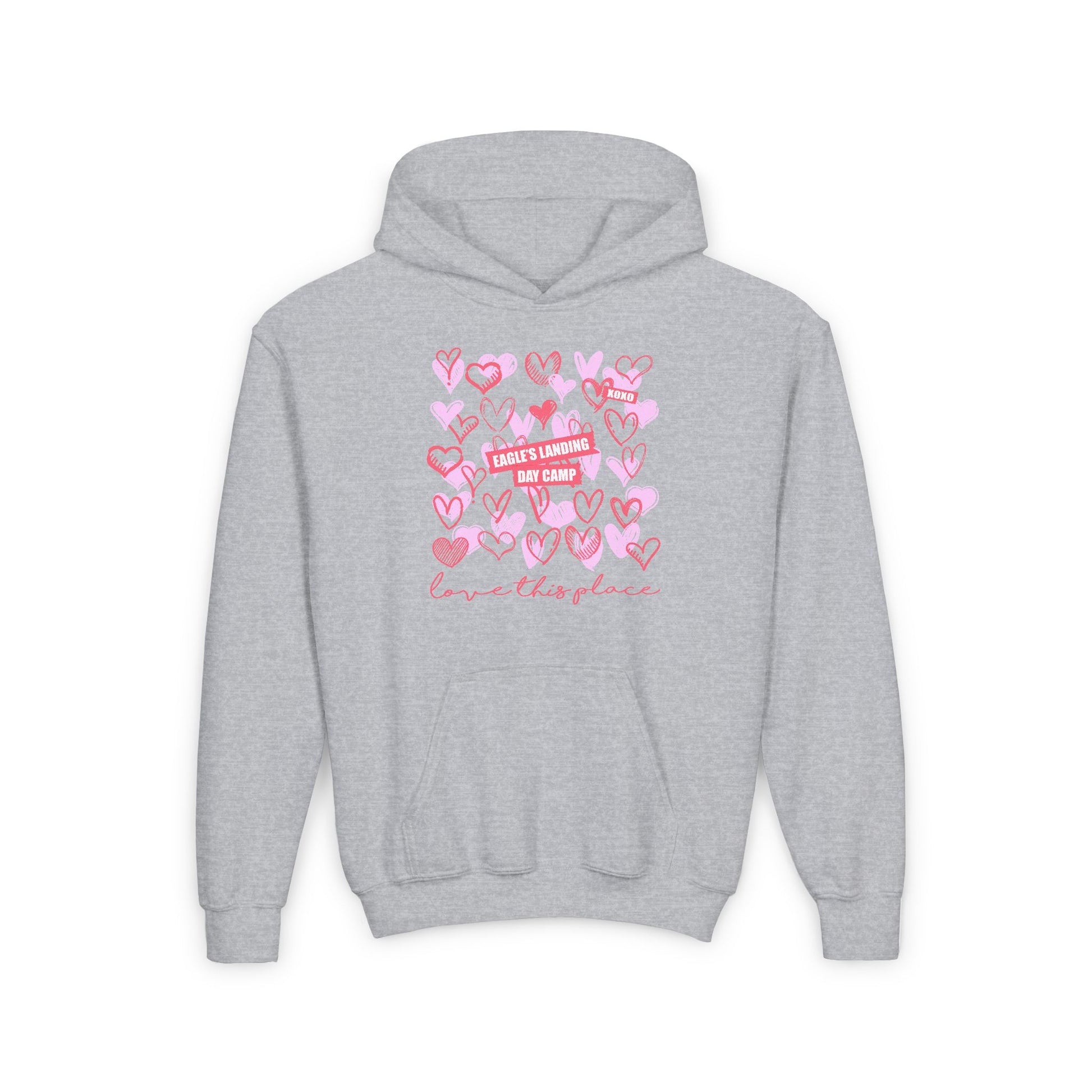 Youth Heavy Blend Hooded Sweatshirt - Love This Place with Heart Design